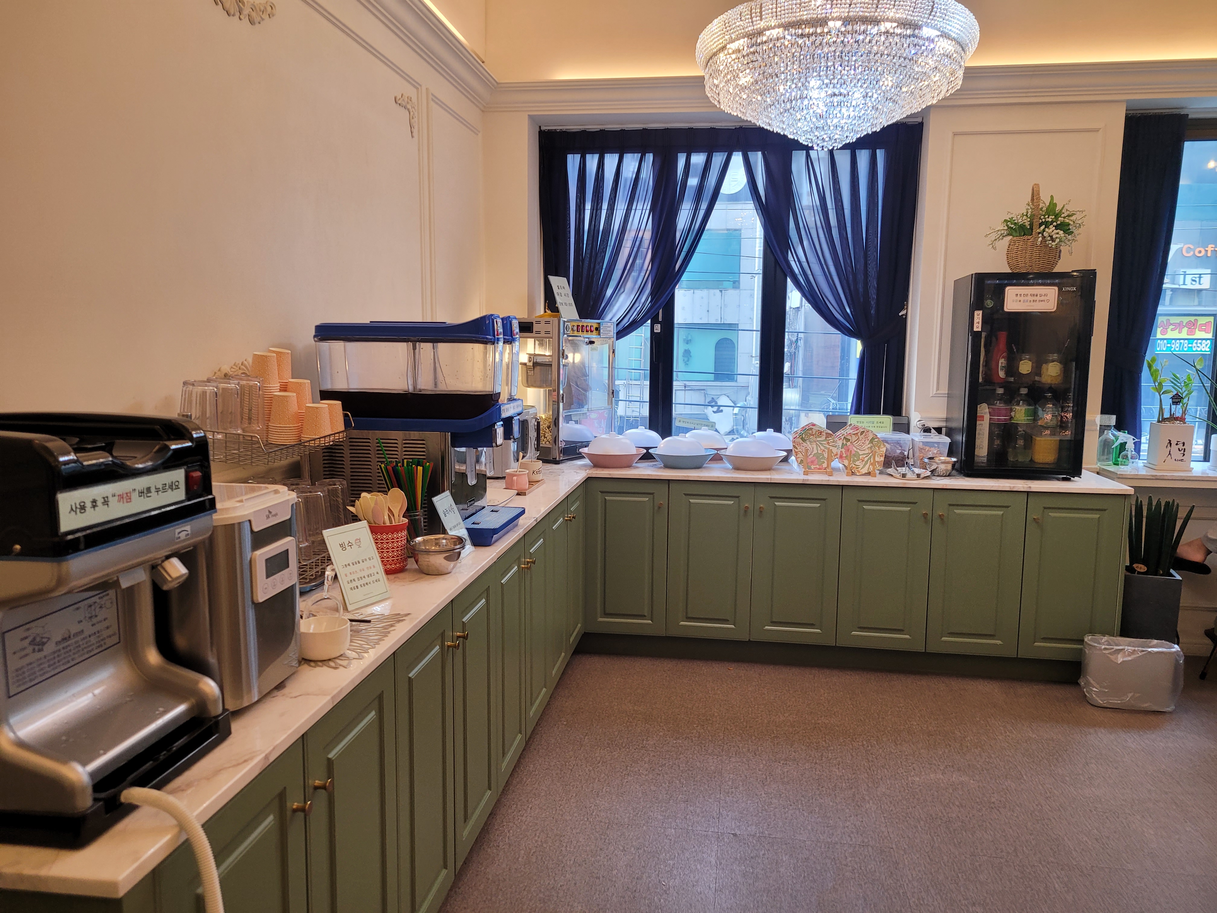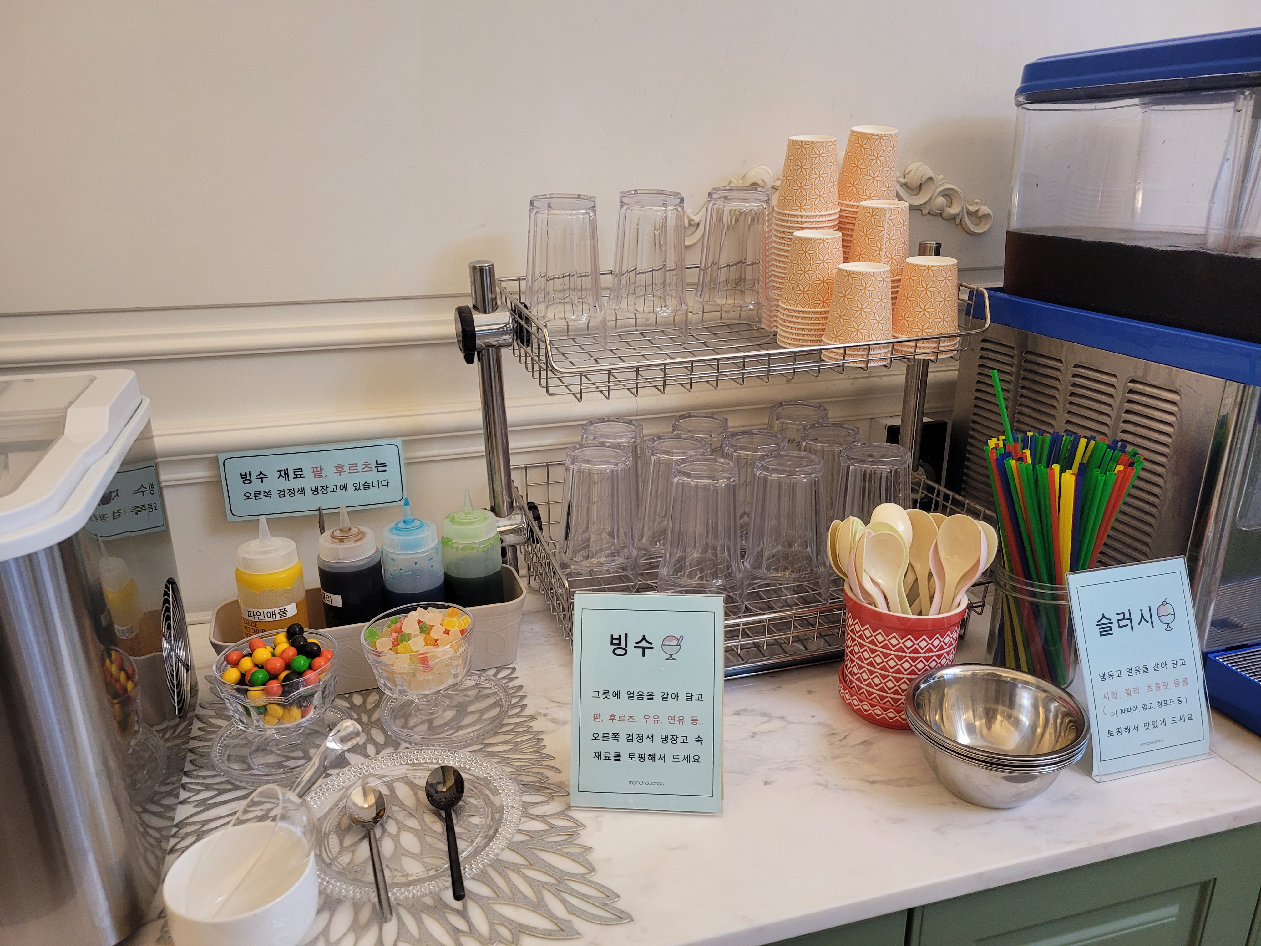 빙수도 만들어 먹을수 있고 토핑도 이렇게 준비되어 있어요!